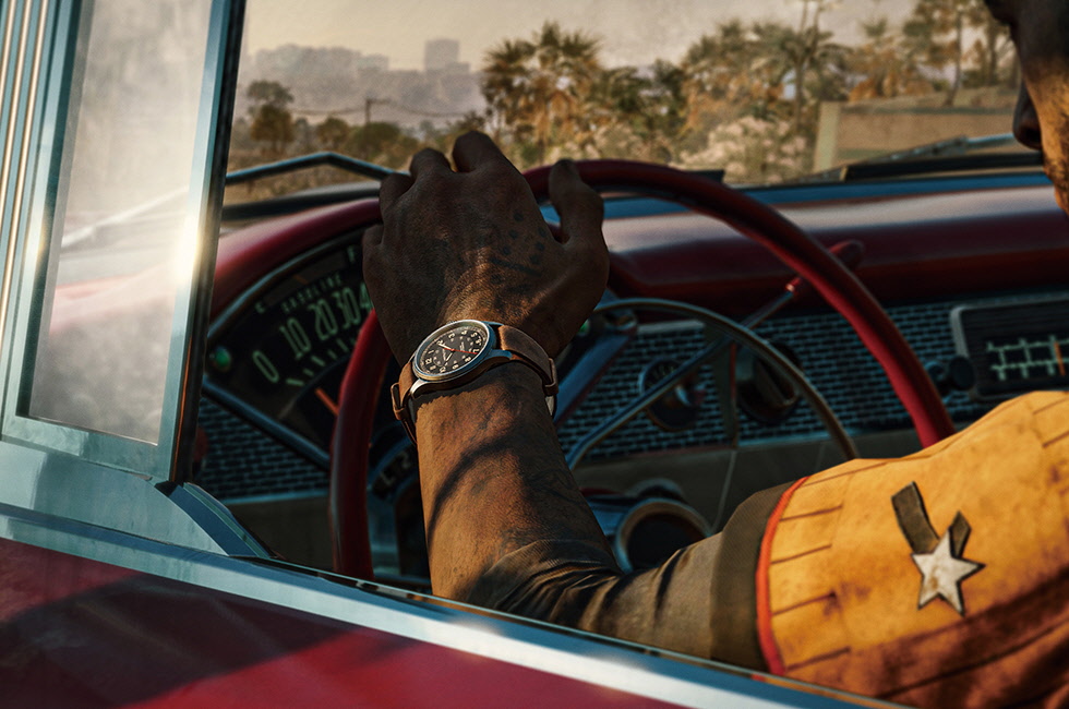 게임 회사 유비소프트가 개발해 출시한 파 크라이 6는 1인칭 슈팅 비디오게임으로 카리브해에 위치한 가상의 섬 ‘야라’의 무자비한 독재자 안톤 카스티요와 싸우는 게임이다. 게임 플레이어들은 군인 다니 로하스 역할을 맡아 독재자의 통치로부터 나라를 구하기 위해 전투에 뛰어들며, 위험한 게릴라 미션을 완수하면 맞춤형 시계를 선물 받게 된다. 이때 게임에 등장하는 타임피스가 바로 해밀턴 카키 필드다. 이 정교한 해밀턴 워치는 게임 속에서 플레이어들에게 수비와 방어를 위한 유용한 도구가 되어 위험한 상황을 더욱 신속하게 빠져나갈 수 있도록 도와주는 키 아이템 역할을 한다. 게임에 등장하는 워치는 갈색 가죽 나토 스트랩과 브라운 컬러의 누벅 가죽 스트랩까지, 교체 가능한 2개의 스트랩 디자인으로 밀리터리한 감성을 담았으며, 마치 현실과 같이 정교하게 제작된 3D 가상 캐릭터들의 손목과 잘 어우러져 더 리얼한 무드를 즐길 수 있도록 했다.