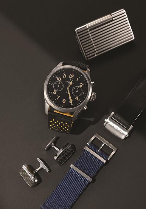 문의 02-518-1967 서밋 2의 다양한 스타일링을 도와줄 레더 또는 나일론 소재 인터체인저블 스트랩과 시계에 매치한 옐로 러버 스트랩 각 16만원대 모두 몽블랑.