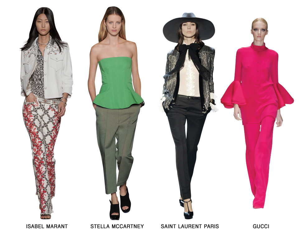 팬츠 수트를 입은 여자는 매우 특별하다. 무심한 듯 쿨한 애티튜드, 그리고 남성적인 카리스마와 부드러운 여성미를 동시에 갖춘 스타일은 그 어떠한 룩보다 파워풀하고 섹시한 느낌을 준다. 다리 라인에 똑 떨어지게 맞춤 재단한 남성복 느낌의 테일러드 팬츠는 이번 시즌 절제된 정장 재킷과의 단조로운 매치를 넘어서 뷔스티에, 시스루 톱 등 여성스럽고 로맨틱한 요소와의 믹스 매치를 통해 다채로운 모습으로 선보인다. 대표적으로 에디 슬리먼의 생 로랑 파리 컬렉션에서는 1960년대 입생로랑의 아카이브에, 여태껏 그가 선보인 슬림하고 샤프한 스타일을 더해 군더더기 없이 간결한 라인의 테일러드 스키니 팬츠를 선보였다.