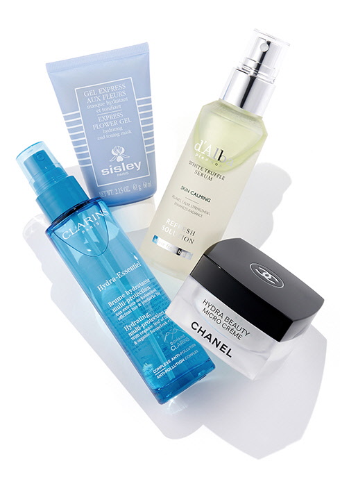 클라랑스 하이드라-에센셜 미스트 알프스 청정 자연에서 얻은 칼란코에 추출물과 수레국화 성분이 민감하고 예민한 피부를 빠르게 진정시킨다. 75ml 4만3천원대. 문의 080-542-9052 시슬리 젤 익스프레스 오 플뢰르 수분 팩 비타민 F가 풍부한 유기농 참깨 추출물과 백합, 아이리스 추출물이 각질층에 수분을 채우고, 피부 표면의 유연함을 되찾아준다. 60ml 15만원. 문의 080-549-0216 달바 화이트 트러플 리프레쉬 스킨 카밍 세럼 병풀 추출물과 위치하젤 추출물, 티트리 잎 오일, 편백 잎 추출물 등 피부 진정에 효과적인 성분이 피부 온도를 즉각적으로 낮춰주고, 수분과 영양을 채워 유·수분 밸런스 조절을 돕는다. 100ml 4만6천원. 문의 070-7714-8428 샤넬 이드라 뷰티 마이크로 크림 카멜리아 알바 PFA가 피부 속 수분 레벨을 이상적인 수준으로 회복시키고, 즉각적인 스무딩 효과를 선사한다. 50g 12만원. 문의 080-332-2700, chanel.com