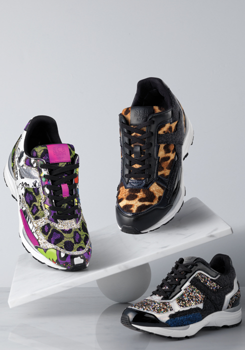 New Heaven 개성 있는 패턴과 다양한 컬러 블로킹, 가죽, 펄 소재를 믹스 매치해 유니크하고 위트 있는 디자인으로 완성한 ‘뉴 헤븐 글리터 스니커즈’. 슈콤마보니의 베스트셀러 아이템으로, 슈콤마보니만의 노하우를 담은 자체 개발 몰드와 메시 내피, 오솔라이트 인솔을 사용해 통풍성과 항균·소취 기능까지 두루 갖췄다. 다리 라인이 예뻐 보이는 2cm의 히든 굽도 주목해야 할 포인트다. (왼쪽부터 시계 방향으로)팝한 네온 컬러와 레오퍼드 패턴, 글리터 장식을 믹스한 뉴 헤븐 글리터 스니커즈, 블랙 가죽 베이스에 레오퍼드 패턴을 더해 럭셔리함을 강조한 뉴 헤븐 글리터 스니커즈, 화려한 글리터 소재로 포인트를 준 유니크한 뉴 헤븐 글리터 스니커즈 각 29만8천원 모두 슈콤마보니.