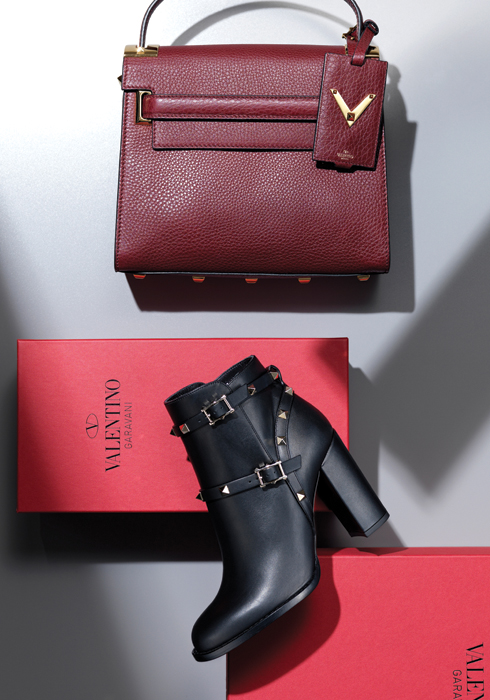 2015 F/W 시즌 ‘마이 락스터드’ 백을 선보이며 잇 백의 시작을 알렸다. 이 아이템 역시 브랜드의 아이코닉한 디테일인 스터드를 가방 밑바닥에 장착해 발렌티노 특유의 모던함을 보여준다. (위에서 아래로) 부드러운 송아지가죽을 사용한 마이 락스터드 백. V 로고를 새긴 네임 태그 장식과 탈착 가능한 숄더 스트랩으로 다양한 연출이 가능한 것이 특징. 블랙 컬러의 미디엄 사이즈 3백30만원, 화이트 컬러의 스몰 사이즈 2백80만원 모두 발렌티노 가라바니. 웨이팅 리스트에 이름을 올려야 할 만큼 인기 높은 락스터드 힐은 매년 컬러와 소재에 변화를 주며 선보이는 발렌티노의 대표 아이템. (위에서 아래로) 피라미드 형태의 스터드 장식이 발등을 타고 이어져 모던하면서도 시크한 느낌을 주는 락스터드 힐 1백20만원, 우아한 골드 컬러의 락스터드 키튼 힐 1백20만원 발렌티노 가라바니.
