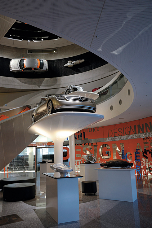 1 메르세데스-벤츠 박물관에서는 엔지니어 학교에서 예전 컬렉션의 주제를 상상해 만든 자동차 모델들이 전시되어 있다.
