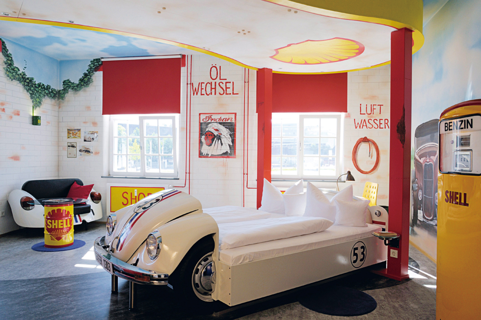 2 슈투트가르트 옆 보블린겐의 오래된 공항은 자동차의 전당으로 거듭났다. V8 호텔에서는 자동차로 가득한 10개의 룸을 고객들에게 제안한다. 보이는 바와 같이 쉘 주유소에 주차된 비틀 자동차 침대가 있는 방도 있으며 다양한 자동차용 부품과 액세서리 역시 구입 가능하다.