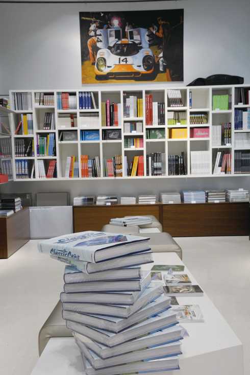 11 포르쉐 뮤지엄의 도서실. 직선적이며 모노톤으로 통일한 심플한 공간은 독일스러운 모던 인테리어를 보여준다.