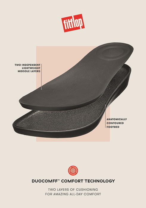 핏플랍(Fitflop)을 한 번도 본 적이 없는 사람은 거의 없을 것이다. 집 앞 공원은 물론, 워터파크, 백화점 등 활동 반경 몇 미터 내에서 핏플랍을 신은 사람을 언제든 쉽게 찾을 수 있어, 그들이 신은 디자인을 보면 그 신발이 ‘핏플랍’이란 사실을 단번에 알아챌 정도이기 때문이다. 그만큼 한번 신으면 헤어나올 수 없는 편안한 중독성 때문에 이미 전 세계에 수많은 마니아층을 쌓아온 핏플랍은 마시아 킬고어(Marcia Kilgore)와 최고 생체 역학 전문가들에 의해 탄생한 글로벌 컴포트 슈즈 브랜드로, 2006년 처음으로 정밀 인체 공학을 도입해 야외 활동에 적합한 서머 샌들을 만들어냈다. 그 당시 함께 디자인 작업을 한 런던 사우스 뱅크(Landon South Bank) 대학교의 데이브 쿡 박사와 대런 제임스 박사 등 생체 역학 전문가들과 정한 규칙과 그들의 조언을 반영한, 3중 밀도의 Microwobbleboard(마이크로워블보드) 미드솔을 적용한 최초의 핏플랍 샌들을 탄생시켰다. 이 마이크로워블보드 미드솔이 우리가 말하는 핏플랍만의 편안한 착용감의 중심이 되는 부분으로, 브랜드가 가장 주력하는 최상의 생체 역학을 구현한다. 이 때문에 ‘세상에서 가장 편안한 신발’이라 불리는 핏플랍은 브랜드의 독창적인 마이크로워블보드 미드솔로 만든 첫 번째 샌들인 웍스타의 성공에 힘입어, 론칭한 이후 지금까지 ‘핏플랍 효과’를 불러일으키며 총 63개국에 진출했다. 이후에도 꾸준히 세상에서 가장 편안한 미드솔을 개발하고, 안나 수이 등 패션 브랜드와 협업을 이어왔으며, 미드솔을 향한 집념의 여정은 아직도 진행 중이다.