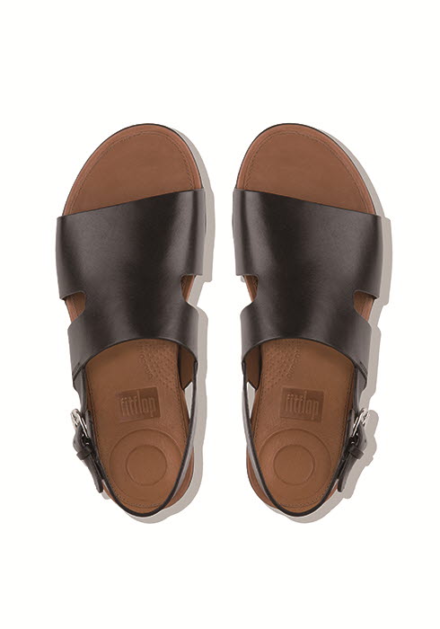 3 H 바 컬렉션의 블랙 레더 샌들.