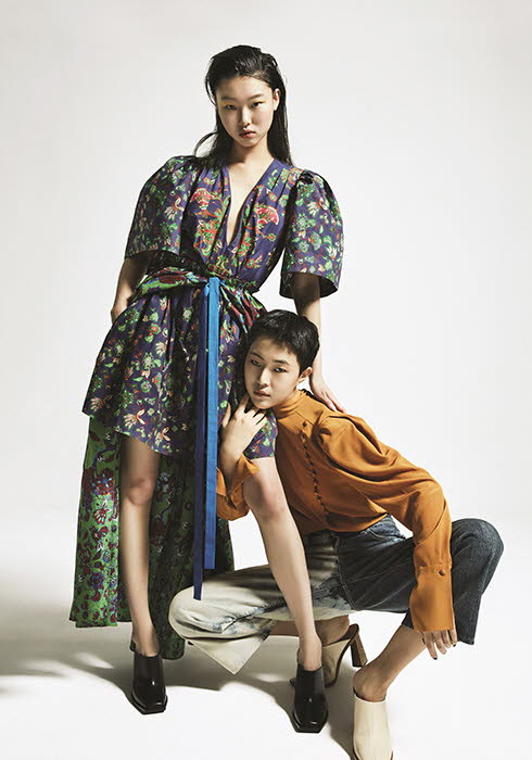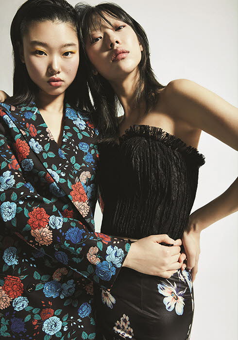 (오른쪽) 블랙 톱 가격 미정,플라워 프린트 스커트 1백38만원 모두 블루마린.