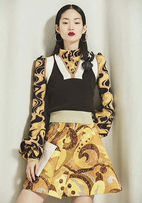 블랙 니트 베스트 2백만원대, 옐로 패턴 셔츠 3백만원대,패턴 스커트 3백만원대,