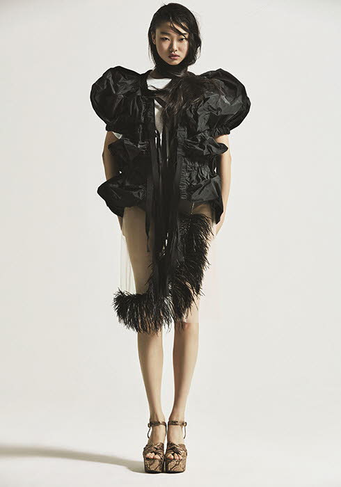 블랙 톱, 깃털 장식 스커트 모두 가격 미정 드리스 반 노튼.