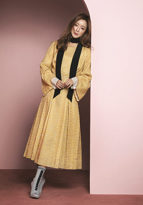 옐로 원피스 3백88만원대, 그레이 니팅 앵클부츠 로코코 1백32만원 모두 펜디.