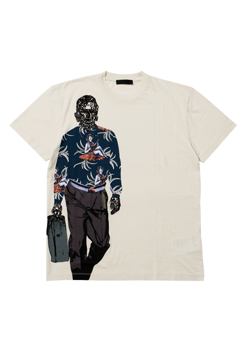 남자의 얼굴과 손을 실로 표현한 컬렉션 라인 티셔츠 61만원 프라다.