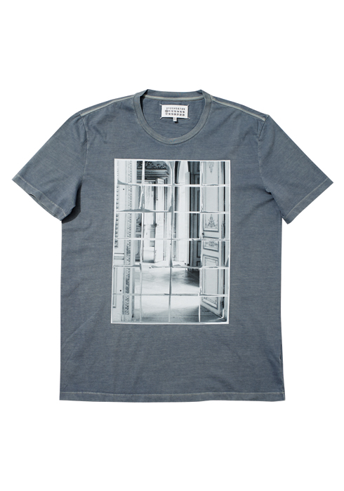 네크라인과 어깨선에 빈티지 왁싱을 더해 자연스러운 멋이 드러나는 회색 티셔츠 31만원 마틴 마르지엘라.