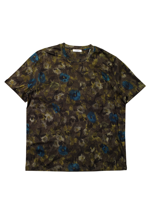 손으로 그린 그림을 그대로 티셔츠로 옮긴 듯한 짙은 카키 컬러 티셔츠 50만원대 발렌티노 by 무이.