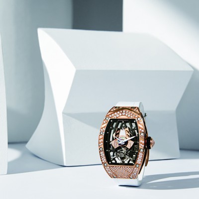 초고성능의 슬림한 오토매틱 투르비용을 장착하고, 다이아몬드와 머더오브펄, 사파이어,