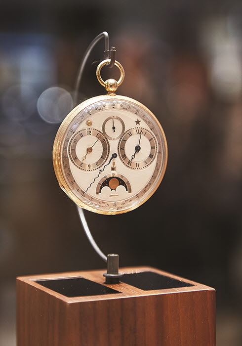 일반적인 문페이즈 디자인에서 벗어나 북반구와 남반구의 달 위치 변화를 볼 수 있도록 6시 방향에 2개의 원형 창을 배치한 독특한 문페이즈 기능의 워치. 월과 요일을 표시하는 창을 시계 정중앙에 배치한 것, 날짜 기능을 레트로그레이드로 표현한 것도 특이한 점이다. 로즈 골드 케이스에 모래빛을 연상케 하는 세이블 컬러를 가미해 브랜드 고유의 우아함을 드러냈다. 8천6백만원대.