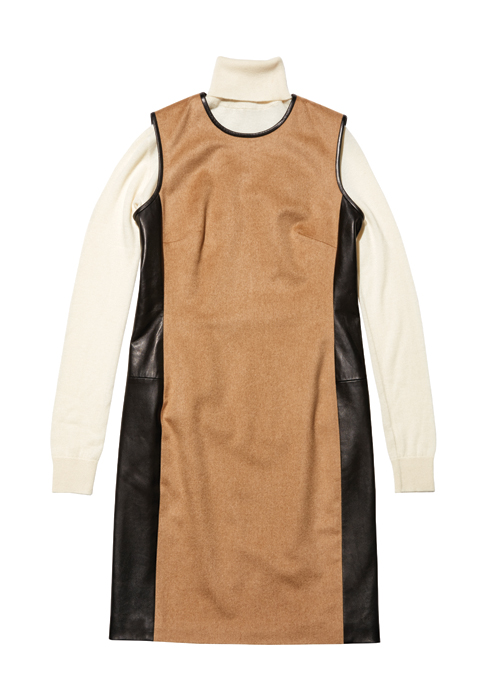 낙타모에 양가죽으로 포인트를 준 원피스, 아이보리 터틀넥 각 2백5만원, 1백20만원 랄프 로렌 컬렉션.