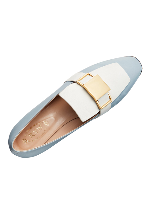 여성스러운 파스텔컬러의 메탈 버클 로퍼 90만원대 토즈.