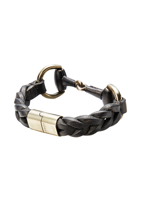 가죽 꼬임 밴드와 홀스빗 버클 장식이 포인트인 팔찌 1백3만5천원 구찌.
