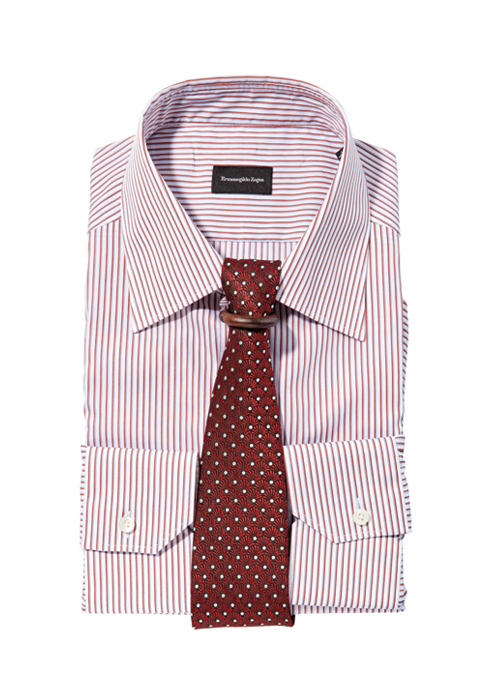 레드 스트라이프 셔츠, 레드 컬러 실크 타이 각 51만원, 25만원 에르메네질도 제냐.