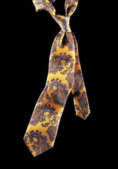 더없이 화려하지만 한 번쯤 도전해보고 싶은 산뜻한 옐로 컬러 페이즐리 패턴의 실크 타이 10만5천원