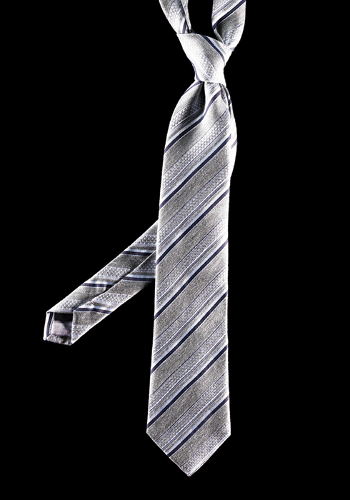 코튼과 실크 소재를 믹스한, 비즈니스를 위한 그레이 스트라이프 패턴 클래식 타이 10만5천원 빨질레리.