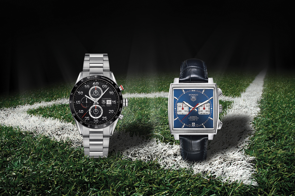 3 (왼쪽부터) 태그호이어 까레라 칼리버 1887 크로노그래프 43mm 세라믹 베젤 워치, 태그호이어 모나코 크로노그래프 워치.
