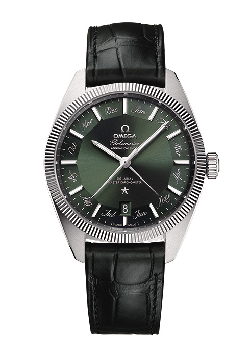 2015년 첫선을 보이며 이름을 알린 글로브마스터 컬렉션은 정확성과 우아한 디자인을 대변하는 상징이 되었다. 애뉴얼 캘린더 버전으로 한층 업그레이드한 컴플리케이션으로 돌아온 뉴 컬렉션에는 가장 트렌디하고 이상적이라 여겨지는 다이얼 지름 41mm를 적용했다. 라운드 케이스에 볼륨감이 느껴지는 플루티드 베젤이 특징인 이 워치는 오메가가 1952년 출시한 최초의 컨스텔레이션 시계의 클래식한 면모를 계승하며, 12각면의 파이팬 디테일을 더했다. 애뉴얼 캘린더 모델로서 중앙에 위치한 핸즈가 달이 바뀌는 즉시 현재의 달을 표시하고, 별도 작업 없이 1년에 단 한 번만 날짜를 조정하면 오차 없이 정확한 시간을 알려준다. 항자성 기술의 혁명으로 일컬어지는 코-액시얼 이스케이프먼트를 장착한 칼리버 오메가 8922 혹은 칼리버 8923에서 동력을 얻는다. 55시간의 파워 리저브를 지원하는 이 무브먼트는 크로노미터 공식 인증 기관 COSC의 엄격한 크로노미터 표준 테스트를 통과한 칼리버다. 사파이어 크리스털을 적용한 투명한 케이스 백을 통해 가장 정확하고 견고한 무브먼트의 움직임을 확인할 수 있으며, 로터에는 천문대 메달리언을 새겨 오메가의 정확도 관련 기록과 업적을 기념한다.