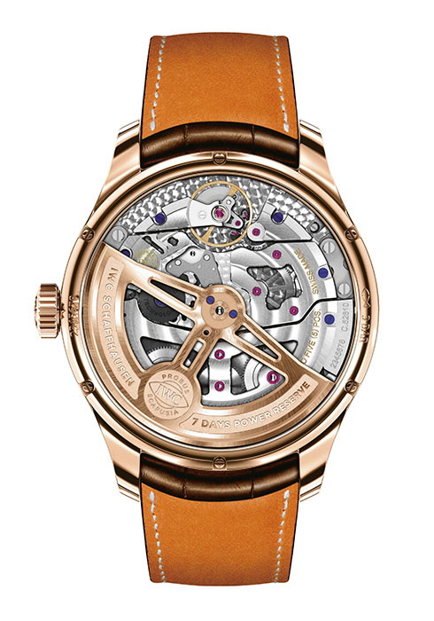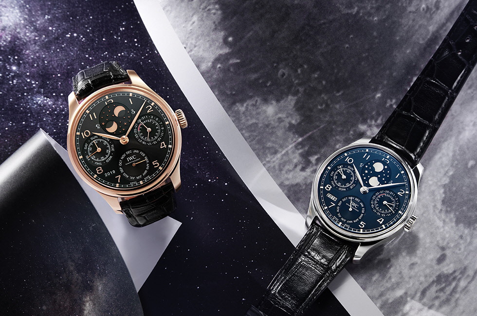 케이스 지름 44.2mm로 1백68시간의 파워 리저브가 가능하다. 날짜, 요일, 월, 그리고 네 자리 연도 표시창과 퍼페추얼 문페이즈 디스플레이로 최상의 매력을 발산하는 포르투기저 퍼페추얼 캘린더 워치 4천6백만원대