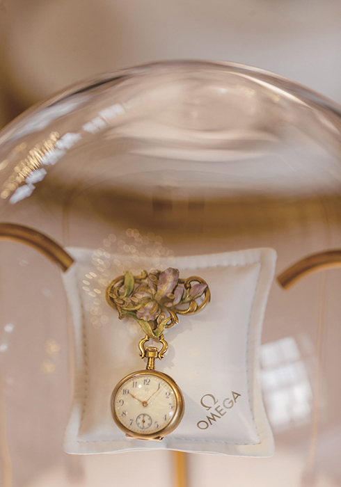 1 1906 오메가 여성용 손목시계 18K 레드 골드 레핀 펜던트 워치를 살짝 변형해 만든(12시 표시가 3시 위치에 있음) 이 시계는 오메가가 최초로 만든 손목 시계 중 하나로, 아이보리 플럭스 다이얼과 찬란한 광채를 선사하는 골드 미닛 트랙, 그리고 작은 디테일 하나까지 신경 쓴 루이 15세 핸즈를 장착했다.