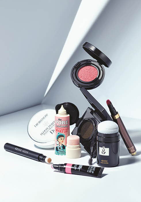 베네피트 포어 미니마이징 메이크업 일명 ‘모공 커버 쿠션’이라 불리는 이 제품은 모공 축소에 효과적인 버섯 추출물을 함유해 메이크업 시 유독 모공이 도드라져 보이는 여성들에게 추천한다. 베이스 메이크업 첫 단계에 모공이 고민되는 부위에 적당량을 덜어, 함께 내장된 맞춤형 포어 블러링 쿠션으로 톡톡 두들겨주면 피부 표면의 과도한 유분을 잡아주고 눈에 띄는 모공을 가려줘 깨끗하고 보송보송한 피부 메이크업을 완성해준다. 15ml 4만3천원대. 문의 080-001-2363