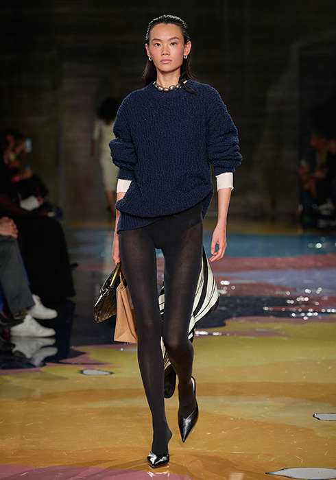 몇 해 전부터 하프 팬츠, 쇼츠, 그리고 로 라이즈 팬츠까지, 팬츠 길이가 점점 짧아지더니 올해는 진정한 하의 실종 단계에 이르렀다. 이번 S/S 시즌 컬렉션에서 가장 큰 관심을 받았던 보테가 베네타의 17번 룩이 가장 좋은 스타일링 참고서가 될 것. 루스한 핏의 네이비 니트 상의에 하의는 스타킹만 신어 시크한 룩을 완성했다. 실제로 이런 룩을 입을 수 있을까 하는 생각도 잠시, 이 시대 패션 아이콘 켄달 제너가 너무도 우아하게 소화하면서 다시 한번 큰 이슈가 되었다. 또 발리 쇼에서는 골드 컬러의 재킷, 팬티, 부츠로 강렬한 룩을 완성했고, 에트로 남성 쇼에서는 셔츠를 팬티 안에 넣어서 입는 파격적인 시도도 볼 수 있었다.
