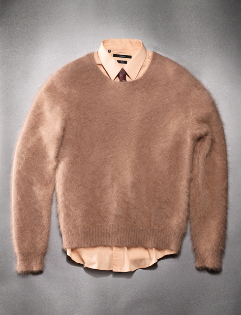 5 페일 컬러 셔츠 70만원대, 앙고라 니트 90만원대, 체크타이 가격 미정 모두 구찌.