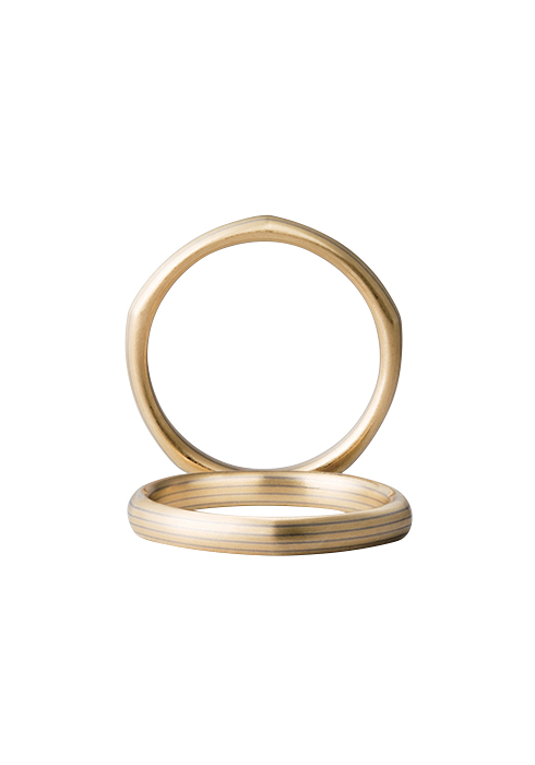 시간은 많은 것을 변화시킨다. 결혼 문화도 시대에 따라 끊임없이 진화해 다양한 웨딩 트렌드를 탄생시켜왔다. 최근에는 화려함과 격식을 중시하던 기존 형식을 탈피하고 합리적이면서도 특색과 의미가 있는 결혼식을 추구하는 예비부부가 늘어났다. 이러한 흐름에 맞춰, 예물도 남들이 다 하는 식상한 것이 아닌, 예비 신랑과 신부가 진정으로 원하고 가치가 있는 것에 집중하는 경향이 두드러지고 있다. 그중 양가 어른들과 친지, 하객 앞에서 결혼 서약을 한 후부터 신랑 신부와 매 순간을 함께할 결혼반지야말로 두 사람의 취향과 안목이 집약된 아이템이니만큼 고심해서 골라야 한다. 사실 대부분의 여성이 매일 착용하기 부담스럽다는 이유로 다이아몬드 반지를 서랍 속에 간직해두는 경우가 많다. 그 때문에 요즘에는 매일 부담 없이 착용할 수 있는 웨딩 밴드를 선호하는 커플이 늘어나고 있다. 그런 의미에서 니와카의 쿄 모쿠메(Kyo Mokume) 컬렉션은 화려함을 좇기보단 유니크하고 실용성을 추구하는 예비부부를 위한 최고의 대안이 될 것이다. 니와카의 쿄 모쿠메 컬렉션은 화려하진 않지만, 금속 고유의 투박하면서도 무게감 있는 질감을 최대한 살린 독특한 디자인과 숙련된 장인의 완벽한 가공 처리로 착용감이 뛰어나기 때문. 니와카는 이미 한국에서도 디자인성과 품질로 많은 사랑을 받고 있는 루시에를 운영하는 니와카 그룹의 메인 브랜드다. 1983년 아오키 도시카즈가 교토에서 설립한 니와카는 금속의 질감을 부각한 동양적인 디자인을 주로 선보이며, 창의적인 디자인과 교토의 장인 기술이 결합된 주얼리로 확고한 위치를 구축하고 있다. 무려 1천2백여 년의 역사를 지닌 교토에서 탄생해, 그곳에서 키워온 감성을 니와카만의 세련된 디자인과 최상의 퀄리티로 구현했으며, 주얼리에 기품 있는 존재감을 더했다. 니와카의 작품에는 전통적인 문양이나 사계의 아름다운 정경이 담겨 있다. 또 정교하고 치밀한 장인들의 손길을 거쳐야만 완성되기 때문에 대량생산이 불가능하다. 이는 판매 보다 제작에 심혈을 기울인다는 브랜드의 철학을 여실히 느낄 수 있는 부분이기도. 제품의 내부와 피니싱에서 바로 이런 장인의 기술력을 엿볼 수 있는데, 직선으로 처리하는 여타 브랜드의 공장형 시스템에 반해 니와카는 부드럽게 곡선 처리해 뛰어난 품질과 착용감을 자랑한다. 이 중 특히 눈여겨보아야 할 대표 모델이 쿄 모쿠메 라인으로, 나무의 단면을 자르면 보이는 나이테에서 이름을 따왔다. 서로 다른 금속을 압축해서 만든 이 컬렉션은 정교한 기술력을 요하는 금속 압축 기술력으로 완성했다. 매트한 표면 피니싱은 반지를 착용하는 사람에 따라 각기 다른 광채를 내고, 은은한 아름다움을 드러낸다.