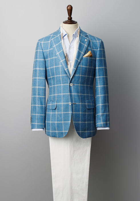 | ELEGANT CLASSIC STYLE선명하지만 요란하게 튀지 않는 청명한 블루 컬러의 싱글 버튼 블레이저에 화이트 컬러의 체크 패턴을 더해 시원한 느낌을 배가했다. 팬츠 역시 화이트로 매치하면 패턴 컬러와 통일감을 주어 정돈된 느낌을 더할 수 있다. 비즈니스 룩에는 컬러감이 돋보이는 슬림한 타이를 연출하고, 위크엔드 룩을 위해선 타이 대신 은은한 색감의 스카프를 곁들여 스타일링에 재미를 주는 것도 좋다. 셔츠와 블레이저 안에 연출한 스카프, 행커치프, 팬츠는 모두 빨질레리. |