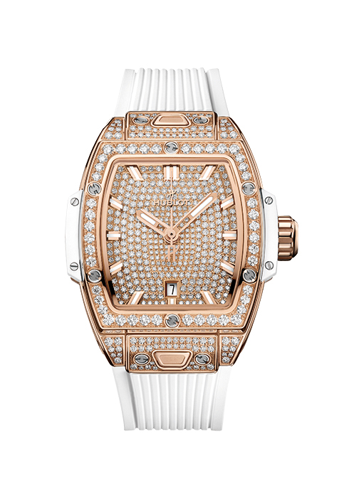 워치메이킹 기술과 미학의 정수인 주얼리가 결합된 스피릿 오브 빅뱅 32mm 주얼리. 총 여섯 가지 버전으로 선보이며, 화이트 골드, 자체 제작 소재인 18K 골드 합금이나 5N 골드보다 따듯한 무드를 선사하는 킹 골드, 그리고 스테인리스 스틸 소재로 완성했다. 총 2만7천7백82개의 각면으로 이루어진 4백79개의 브릴리언트 컷 다이아몬드를 세팅한 스틸 또는 킹 골드 소재의 스피릿 오브 빅뱅 주얼리는 마치 수천 개의 별이 떠 있는 듯 화려한 반짝임을 선사한다. 또 총 2.1캐럿의 다이아몬드가 미들 케이스, 베젤, 다이얼에 눈부신 광채를 부여한다. 빅뱅 특유의 매력과 세련된 젬스톤이 한데 어우러진 특별함으로 워치를 사랑하는 사람이라면 소장할 만한 가치가 충분하다.