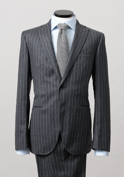 진한 그레이 컬러에 화이트 핀 스트라이프가 들어간 볼리올리의 시그너처 투 버튼 수트. 최상급 울이 선사하는 부드러운 촉감과 고급스러운 광택은 시간이 지나도 바래지 않는다. 어깨와 몸판이 편안하게 감기는 레귤러 피트로 착용감과 활동성을 극대화했다. 간격이 좁은 블루 스트라이프 셔츠와 니트 타이로 캐주얼한 요소를 더하거나 드레스 셔츠와 폭이 넓은 타이로 포멀하게 연출해보자.