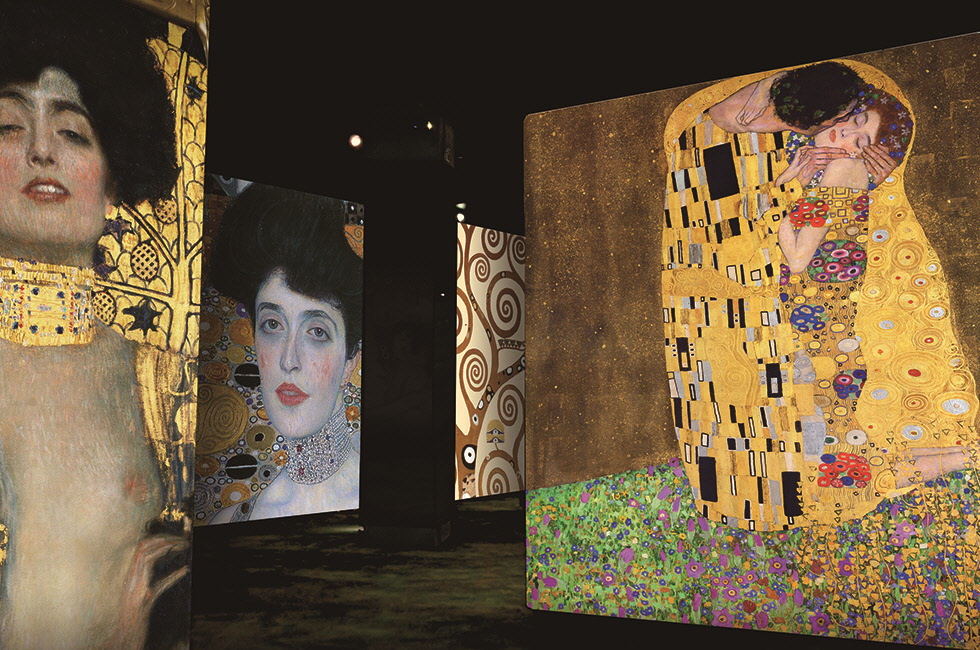 6 클림트의 명작 ‘키스’와 ‘유디트’를 구현한 미디어 아트(제주 ‘빛의 벙커’에서 전시 중). 이 두 작품을 벨베데레 궁전에서 볼 수 있다. 사진 Le Bunker de Lumie`res ⓒCulturespaces / Gianfranco Iannuzzi