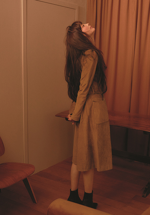 슬림한 핏이 돋보이는 레더 소재 스웨이드 코트 1백30만원 마이클 마이클 코어스.