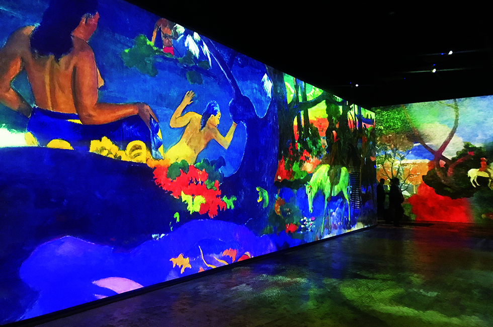 잘 알려져 있다시피 고갱은 친한 친구 사이였던 고흐가 그와 다툼 끝에 귀를 자른 유명한 사건 덕분에 자주 회자되는 인물이다. 하지만 19세기를 찬란하게 수놓은 세기의 예술가 중 하나로 손꼽히는 화가이기도 하다. 그래서 ‘고갱 편’이 10분가량에 그치는 단편이라는 점은 개인적으로 살짝 아쉽지만, 짧아도 ‘임팩트’에 있어서는 결코 뒤지지 않는다. 고갱의 대표작 ‘우리는 어디에서 왔는가? 우리는 누구인가? 우리는 어디로 갈 것인가?’(1897)를 비롯해 열대 숲에서 드러나는 타히티섬의 여인들, 사랑해마지않던 브르타뉴(Bretagne)의 시골 풍경 등 특유의 웅장하고 원초적인 강렬함을 품은 이미지들이 시선을 압도한다. 고갱 편은 그동안 샤갈, 클림트, 르네상스 거장 등 역사 속 대가들의 전시를 마련해온 컬처스페이스에서 세계 최초로 한국에서 공개한 콘텐츠. 어쩌면 내년께에는 한국 예술사에 획을 그은 화가의 작품 세계를 빛의 벙커 전시장을 통해 접하게 될지도 모르겠다.