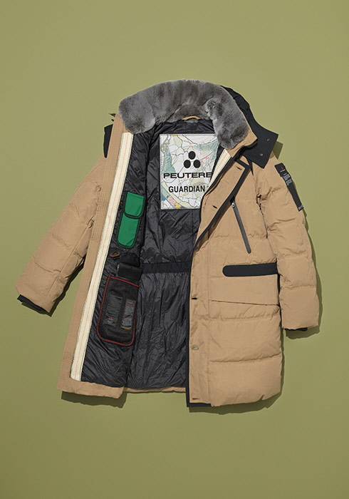 수납공간을 극대화한 멀티플 포켓과 탈착 가능한렉스 퍼 칼라 등 실용적인 면모가 돋보이는 이 제품은 아웃도어 웨어로 제격이다. 위아래로 여닫을 수 있는 양날 지퍼와 단추로 이중 잠금이 가능하다. 2백58만원.