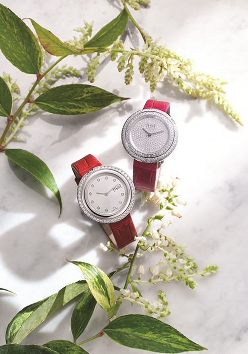(왼쪽부터) 피아제 포제션 컬렉션 46개의 브릴리언트 컷 다이아몬드를 세팅한 케이스, 11개의 다이아몬드로 장식한 인덱스, 레드와 다크 블루, 두 가지 컬러를 제공하는 앨리게이터 스트랩으로 아름다움을 극대화한 34mm 화이트 골드 케이스 워치 가격 미정. 1백81개의 브릴리언트 컷 다이아몬드를 세팅한 18K 화이트 골드 케이스와 2백39개의 다이아몬드를 파베 세팅한 다이얼이 시선을 압도하는 앨리게이터 가죽 스트랩 워치 가격 미정. 문의 02-540-2297