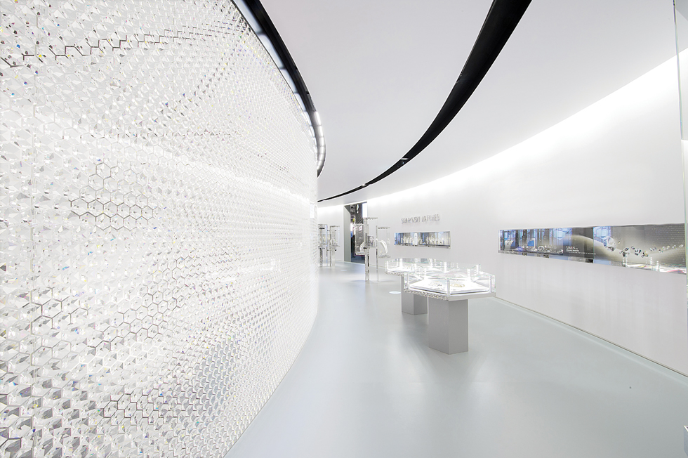 1 날개를 펼치고 있는 백조의 모습을 형상화한 스와로브스키 부스. 요시오카 도쿠진은 이 부스를 찾는 이들이 진정한 꿈의 세계를 경험할 수 있도록 환상적으로 완성했다. 미러형 반사체와 LED 조명 2만2천8백56개로 제작했다.