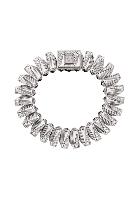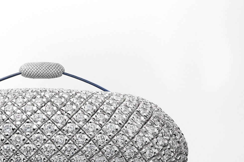베젤은 물론 다이얼, 브레이슬릿까지 눈부신 바게트 컷 다이아몬드로 이뤄진 디자인으로 샤넬 워치메이킹의 장인 정신을 담았다. 무려 약 3.51캐럿, 73개의 바게트 컷 다이아몬드를 세팅한 18K 화이트 골드 케이스에 약 3.9캐럿, 46개의 바게트 컷 다이아몬드로 이뤄진 베젤, 약 2.75캐럿, 1백68개의 다이아몬드로 장식한 18K 화이트 골드 다이얼까지. 브레이슬릿에는 약 24.99캐럿, 5백66개의 바게트 컷 다이아몬드를 세팅했다. 푸시-다운 크라운에는 약 0.1캐럿의 브릴리언트 다이아몬드 1개를 세팅했으며, 사파이어 크리스털 케이스 백에는 12개 한정판이라는 의미인 ‘Limited to 12’가 새겨져 있다.