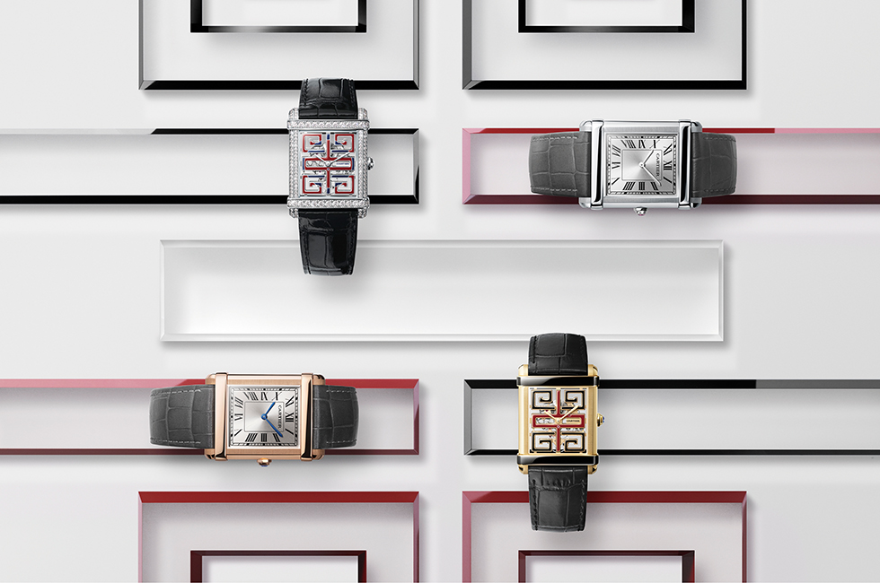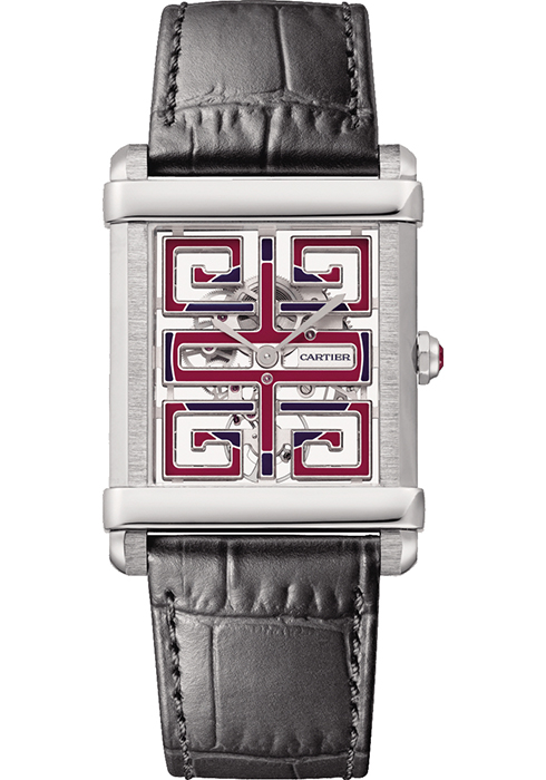 메종의 시그너처 컴플리케이션을 골드 케이스에 적용해 선보이는 이 타임피스는 오픈워크로 작업한 다이얼에 아시아 전통 창문의 형태를 담고 있다. 기하학적인 케이지 사이로 스켈레톤 무브먼트가 신비로운 자태를 드러낸다. 아시아 전통 노하우에서 영감을 얻은 레드 & 블랙 및 블루 래커 컬러는 고급스러움과 입체적인 면모를 뽐낸다. 워치 속 9627 MC 스켈레톤 무브먼트는 메종이 새로운 탱크 쉬누와즈를 위해 개발한 것. 시간당 2만1천6백 회 움직이며, 36시간의 파워 리저브를 지원한다. 각각 고유 번호를 부여해 한정으로 출시한다. 웅장하고 이국적인 새로운 탱크 쉬누와즈 워치는 가장자리를 베벨링 처리하고 수평 축을 지닌 커다란 크기의 세련된 플래티넘, 옐로 골드 또는 핑크 골드 소재의 시·분 버전도 선보인다. 이 모델은 현재 메종의 가장 정제된 메캐니컬 무브먼트인 430 MC 무브먼트가 시계를 움직인다.