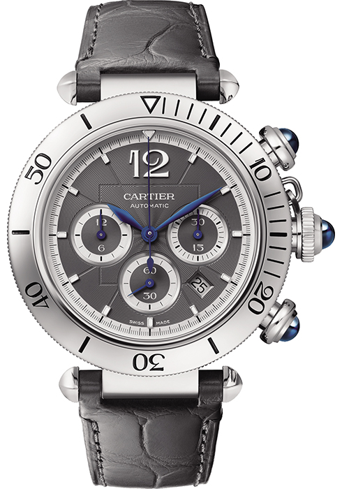 기계식 메커니즘의 역작으로 불리는 크로노그래프는 짙은 그레이 컬러 다이얼이 오리지널 파샤 드 까르띠에 워치의 강렬한 코드를 극대화한다. 크로노그래프 고유의 푸시 피스가 매력적인 이 모델은 까르띠에 매뉴팩처 오토매틱 와인딩 메캐니컬 무브먼트 1904-CH MC로 동력을 얻으며, 47시간의 파워 리저브를 지원한다. 문의 1566-7277