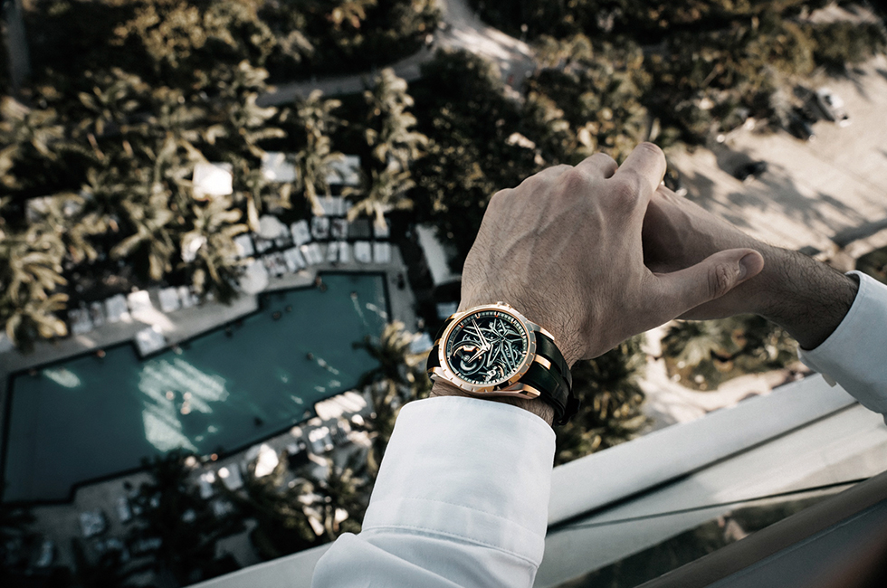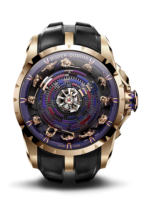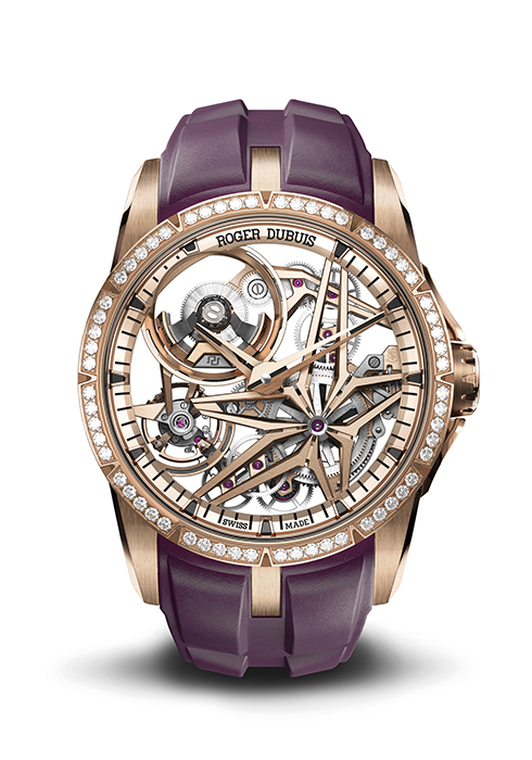 도피네 핸드, 트리플 러그, 플루티드 베젤과 로만 인덱스의 앙상블이 강렬한 매력을 발산하는 엑스칼리버 모노밸런시어는 로저드뷔를 대표하는 컬렉션이다. 한층 더 높은 차원의 정밀한 성능을 위해 밸런스 휠 관성을 2배로 늘림으로써 안정성을 개선하고 충격에 대한 감도를 줄였다. 다이아몬드로 코팅한 실리콘 소재의 팔레트 스톤과 새로운 윤활유는 이스케이프먼트 휠의 모양을 최적화해 더 나은 효율성과 에너지 전달을 높인 칼리버 RD720SQ를 장착했다. 외관은 핑크 골드 케이스에 텅스텐으로 마감해 디자인에 현대적인 감각을 가미했다. 베젤에 다이아몬드를 세팅한 버전과 핑크 골드 버전으로 선보인다.