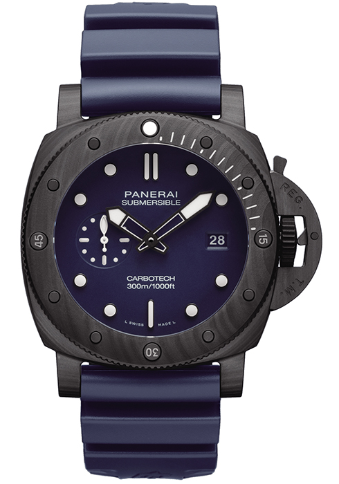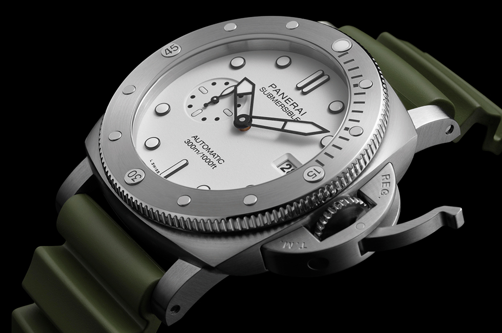 섭머저블 컬렉션은 고유의 DNA를 고수하며 진화를 거듭해온 파네라이를 대표하는 다이버 워치다. 특허 받은 크라운 보호 장치를 비롯해, 수심 300mm 방수 기능, 잠수 경과 시간을 측정할 수 있는 단방향 회전 베젤, 그리고 슈퍼루미노바로 채운 메탈릭 아플리케도 다이버에게 없어서는 안 될 생존 도구로서의 기능을 충실히 수행한다. 컬렉션을 상징하는 P.900 칼리버를 탑재했으며, 세 가지 모델 모두에 파네라이의 지속적인 친환경 노력을 반영했다. 기본 스트랩에는 재활용 소재를 30% 사용했으며, 섭머저블 쿼란타콰트로 라인의 모든 스트랩과 마찬가지로 교체용 스트랩에는 재활용 패브릭을 68% 활용했다. 티타늄보다 가볍고 내부식성이 뛰어난 카보테크를 케이스에 적용해 심해를 상징하는 딥 블루 컬러를 다이얼에 적용한 버전과 스틸 케이스에 블랙 다이얼을 장착한 버전, 화이트 컬러 다이얼에 밀리터리 그린 톤의 스트랩을 매치한 섭머저블 쿼란타콰트로 비앙코 세 가지 모델이 라인업을 이끈다.