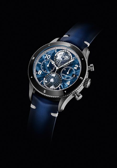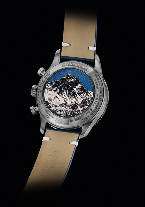 ‘제로 옥시즌’이라는 이름에서 연상할 수 있듯 시계 내부를 무산소 상태로 밀폐해 높은 내구성과 정밀도를 보여준다. 또 영하 50℃라는 극한의 온도에서도 무브먼트의 움직임을 원활하게 하는 특별한 윤활유를 사용해 가장 가혹한 환경에서 장비를 작동시켜야 하는 탐험가들에게 여러 이점을 제공한다. 산악가의 다양한 작업의 경과 시간을 기록할 수 있는 크로노그래프 워치로, 새롭게 장착한 칼리버 MB 29.27은 0.1초 단위까지 측정 가능해 시간의 정확성을 높이며, 2시 방향의 푸셔를 통해 시작과 정지를, 4시 방향의 푸시 피스로 크로노그래프를 원점으로 리셋, 재구동하는 플라이백 기능도 갖췄다. 여기에 남반구와 북반구로 구분한 회전 지구본 모양의 인디케이터와 24시간 스케일, 그리고 낮/밤 인디케이터와 디스크로 표시하는 날짜창 등으로 산악가를 위한 ‘장비’의 역할을 모두 갖췄다.
