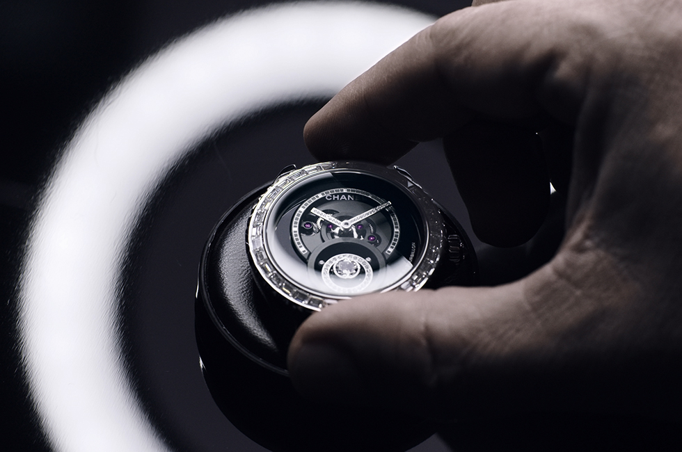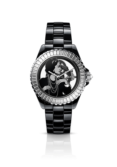 블랙 컬러 의상에 즐겨 하던 진주를 착용한 가브리엘 샤넬의 아이코닉한 실루엣을 다이얼에 올린 워치. 견고한 블랙 세라믹 케이스와 브레이슬릿에 바게트 컷 다이아몬드를 세팅한 베젤로 우아함을 더했다. 마치 다이아몬드 프레임 액자 속에 있는 듯한 오픈워크 다이얼로 가브리엘 샤넬의 모습을 더욱 고귀하고 신비스럽게 만들며 시간의 수호자 같은 그녀의 모습을 표현했다.